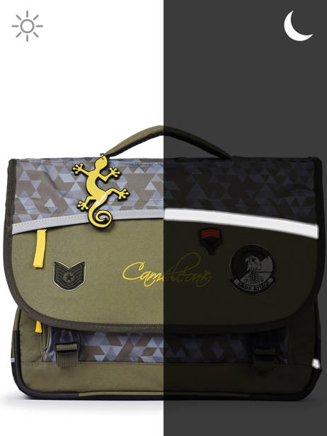 41 cm - 17 liter - 1.35 kg ~ Deze boekentas komt uit de Actual collectie van het merk Caméléon. Met een breedte van 41 cm is dit model ideaal vanaf het vierde leerjaar. Deze ruime boekentas bestaat uit drie gescheiden opbergvakken, die mappen en schoolboeken van A4 formaat of groter kunnen bevatten. Daarnaast beschikt dit model ook over een ruime ritsvak vooraan, en een plat opbergvakje in de overslagflap vooraan. Er is ook een langwerpig opbergvak met velcro voorzien, om een liniaal in op te bergen. Dankzij het dubbele kliksysteem zal uw kind de boekentas veilig kunnen openen en sluiten. Voor optimaal comfort zijn de rugzijde en verstelbare schouderbandjes gewatteerd. Deze boekentas is ook voorzien van reflectoren, zodat uw kind zich veilig in het verkeer kan begeven!