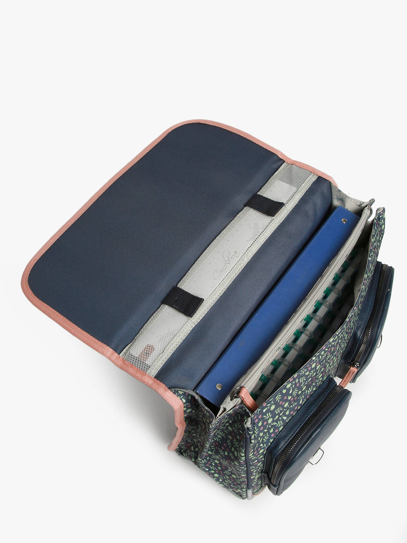 38 cm - 18 litres - 1.05 kg ~ Cartable enfant primaire 38cm de la ligne Vintage Fantasy de chez Caméléon, parfait pour le CP, CE1 et le CE2. Il se divise en deux compartiments séparés par une poche centrale zippée et peut contenir les formats cahiers A4 et 24x32cm. On retrouve à l'extérieur du cartable un emplacement pour la gourde. Pratique, il dispose de deux poches à fermeture éclair sur le devant, idéales pour un petit goûter ou l'agenda. Petit plus, ce cartable dispose d'une étiquette nom. Le fond du cartable est renforcé pour plus de solidité et des bandes réfléchissantes sont disposées autour du sac et sur les bretelles. Conçu pour le confort des enfants, le dos et les bretelles sont rembourrés. Petit plus, la règle est offerte ! Fabriqué en polyester recyclé imperméable.