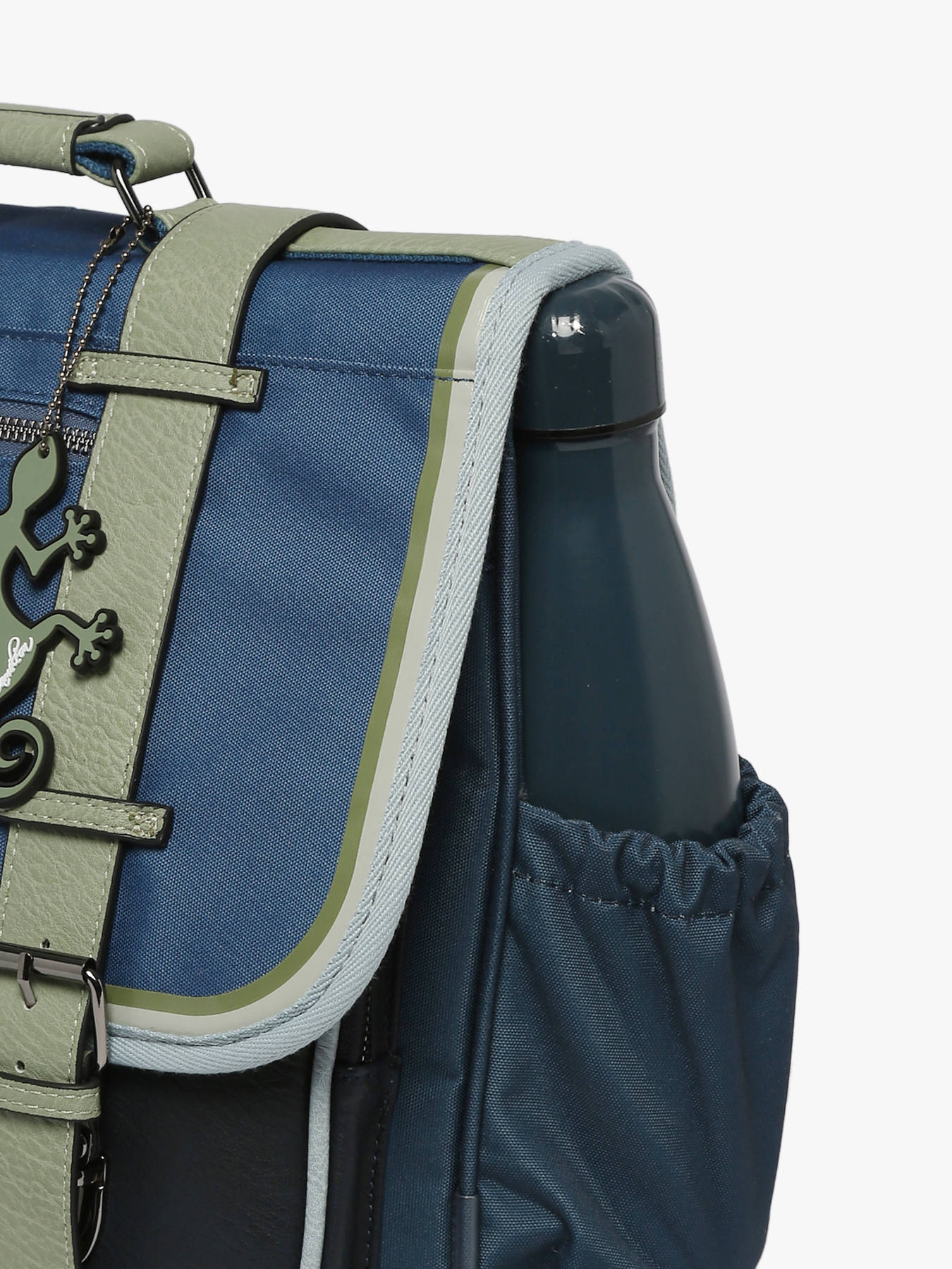 41 cm - 24 litres - 1.33 kg ~ Cartable enfant primaire 41 cm signé Caméléon de la ligne Vintage Urban. Ce cartable enfant convient parfaitement pour le CM1 et le CM2. Il se divise en trois grands compartiments pour l'ensemble des affaires d'école. Fonctionnel, il dispose d'un emplacement spécial gourde et de trois poches à fermeture éclair sur le devant du cartable. Petit plus, ce cartable dispose d'une étiquette nom. Ergonomique, la poignée et le fond du cartable sont renforcés. Très confortable, le dos et les bretelles sont rembourrés. Ce cartable est fabriqué en polyester recyclé imperméable. Côté sécurité, des bandes réfléchissantes sont disposées autour du cartable enfant. Petit plus, une règle est offerte !