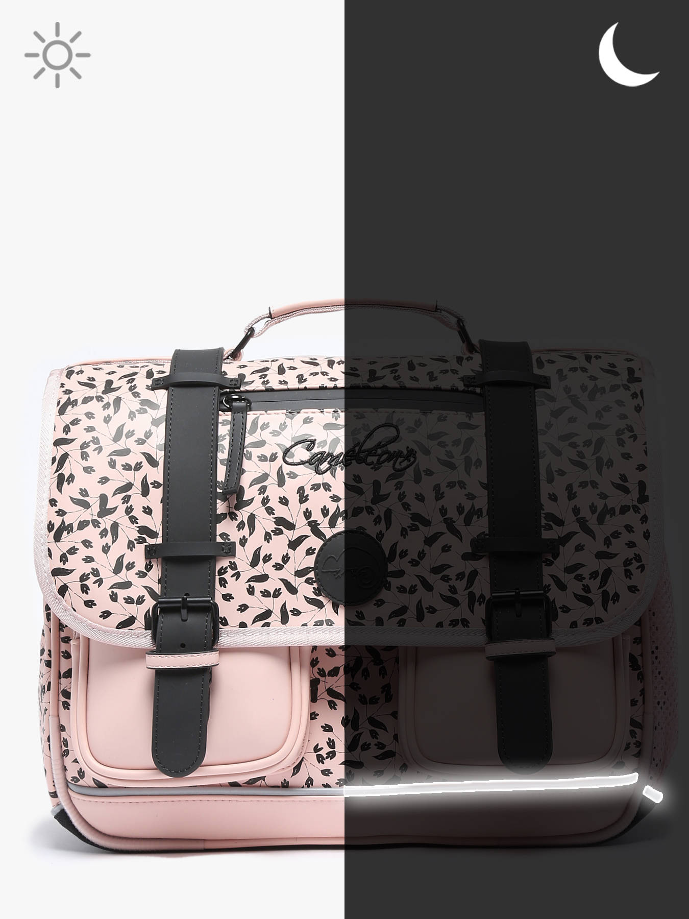 41 cm - 24 litres - 1.66 kg ~ Cartable primaire 41 cm signé Caméléon de la ligne Vintage North. Ce cartable enfant convient parfaitement pour le CM1 et le CM2. On adore les belles touches vintage avec ses finitions et sa poche à fermeture zippée sur le rabat ! Il se divise en trois grands compartiments pour l'ensemble des affaires d'école (deux compartiments pour les coloris Green Palm et Pink Floral). Fonctionnel, il dispose d'une poche intérieure zippée, d'un emplacement spécial règle ainsi que de deux poches à fermeture éclair sur le devant du cartable. Petit plus, ce cartable dispose d'une étiquette nom au dos. Ergonomique, la poignée et le fond du cartable sont renforcés. Très confortable, le dos et les bretelles sont rembourrés. Ce cartable est imperméabilisé. Côté sécurité, des bandes réfléchissantes sont disposées autour du cartable enfant. Petit plus, une règle est offerte et un emplacement pour la gourde est présent sur le côté du sac !
