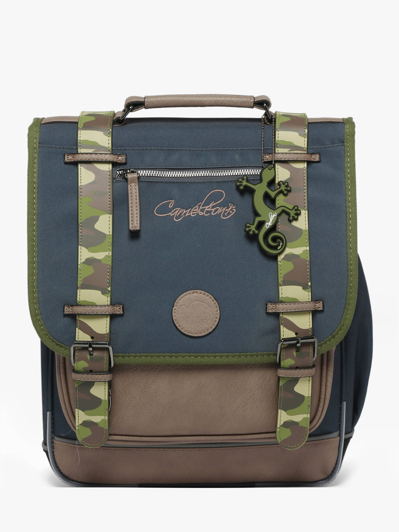 39 cm - 19 litres - 1.12 kg ~ Sac à dos enfant 39 cm primaire de la ligne Vintage Urban signé Caméléon. On adore ce cartable au format revisité, idéal pour les petits gabarits par exemple. Ce sac enfant est parfait pour le CP et le CE1. Le poids des affaires scolaires sera mieux réparti, ce qui soulagera le dos des enfants. Les deux compartiments de ce cartable seront parfaits pour accueillir des cahiers format A4. Un emplacement pour la règle a été prévu, et une poche latérale permet de glisser une gourde. Pour le confort des enfants, le dos et les bretelles du sac à dos sont rembourrés, et le fond du sac est renforcé. Côté sécurité, ce cartable dispose de bandes réfléchissantes. Fabriqué en polyester recyclé imperméable.