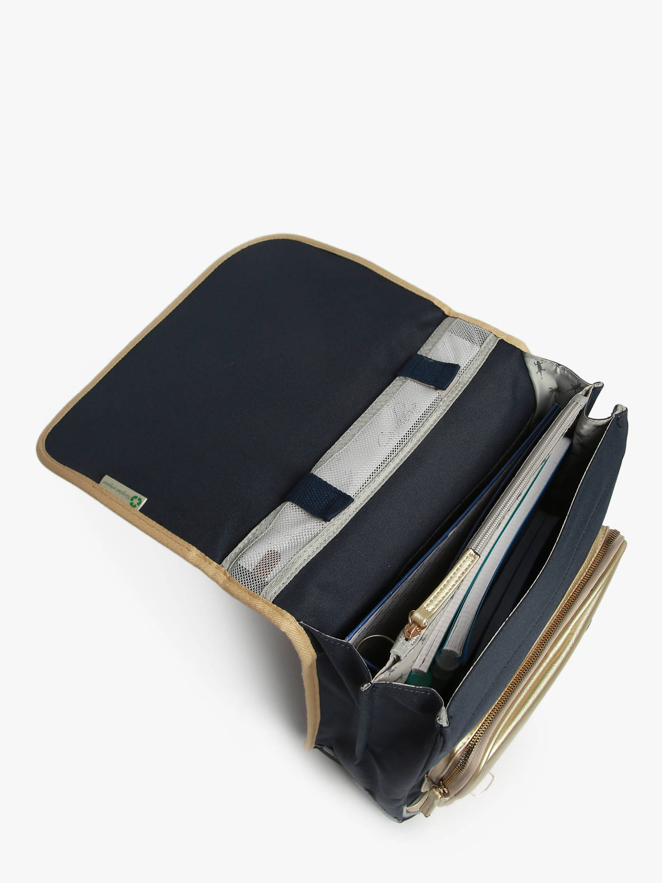 39 cm - 19 litres - 1.23 kg ~ Sac à dos enfant 39 cm primaire de la ligne Vintage Fantasy signé Caméléon. On adore ce cartable au format revisité, idéal pour les petits gabarits voulant avoir un sac à dos par exemple. Ce sac enfant est idéal pour le CP et le CE1. Le poids des affaires scolaires sera mieux reparti, ce qui soulagera le dos des enfants. Pour le confort des enfants, le dos et les bretelles du sac à dos sont rembourrés, le fond du sac est renforcé. Côté sécurité, ce cartable dispose de bandes réfléchissantes. Les deux compartiments de ce cartable seront parfaits pour accueillir des cahiers format A4. Un emplacement pour la règle a été prévu ainsi qu'un emplacement pour la gourde. Fabriqué en polyester recyclé imperméable.