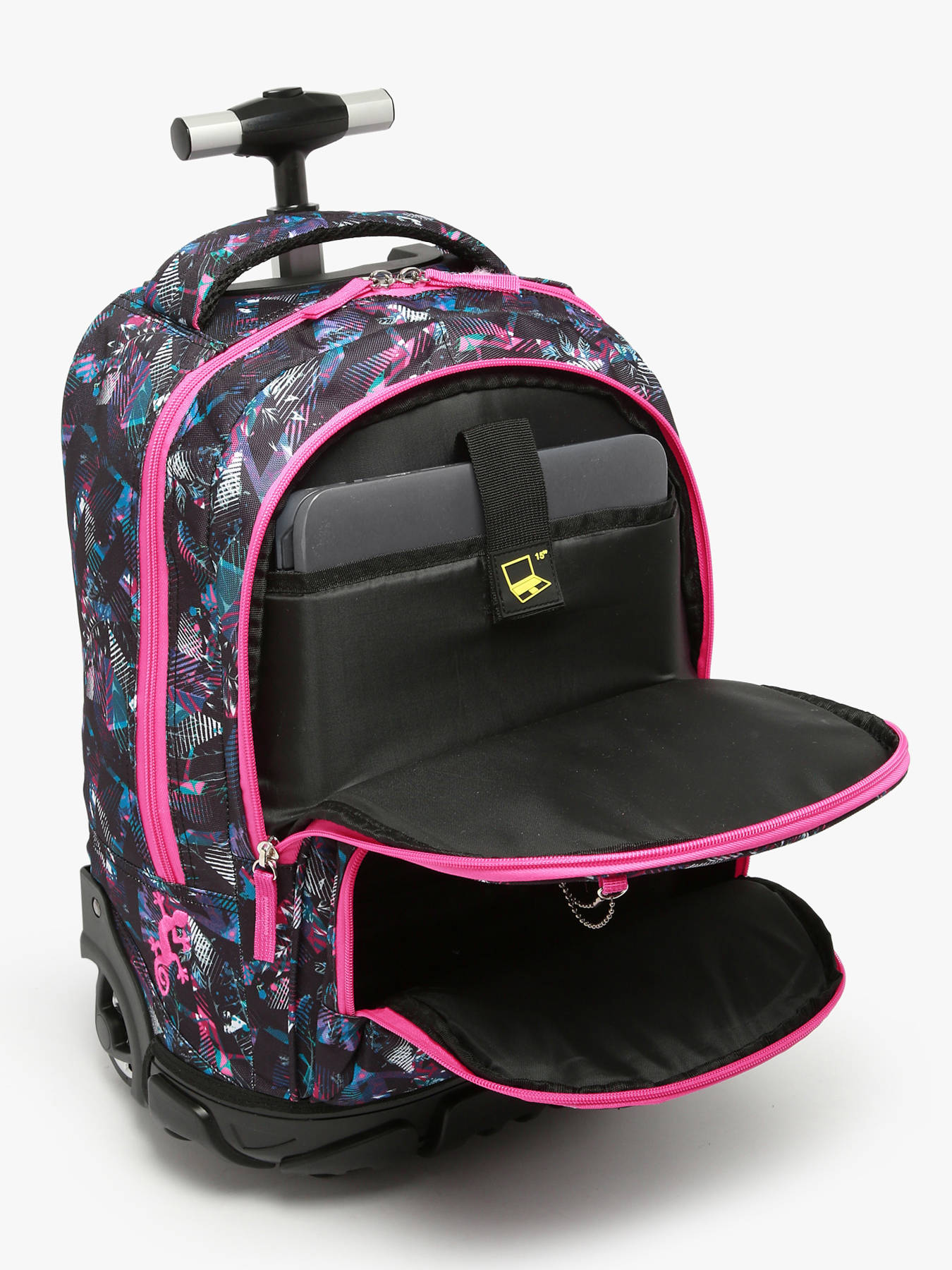 45 cm - 31 litres - 1.9 kg ~ Ce sac à dos à roulettes 45 cm de la ligne Futur signé Caméléon accompagnera idéalement les élèves à partir du CE2. Son imprimé all-over affirmé, décliné en Pixel Grey ou Pixel Pink, apporte une touche moderne et tendance. Doté de deux compartiments principaux et d’une poche zippée sur le devant, il permet de ranger facilement tous les formats de cahiers (21 x 29,7 cm, 24 x 32 cm), classeurs A4 et plus. Une poche filet sur le côté permet d’y glisser une gourde. Il a également une poche pour glisser un ordinateur portable jusqu'à 15 pouces. Pratique, il peut être porté sur le dos ou tiré sur roulettes grâce à sa poignée télescopique en aluminium réglable, ses bretelles escamotables et sa housse de protection pour les roues. Son fond rigide et sa coque en plastique assurent une excellente durabilité. Une sangle velcro ornée du logo Caméléon brodé et un porte-clé assorti viennent compléter le look du sac. Conçu pour durer et accompagner le quotidien avec style et robustesse.