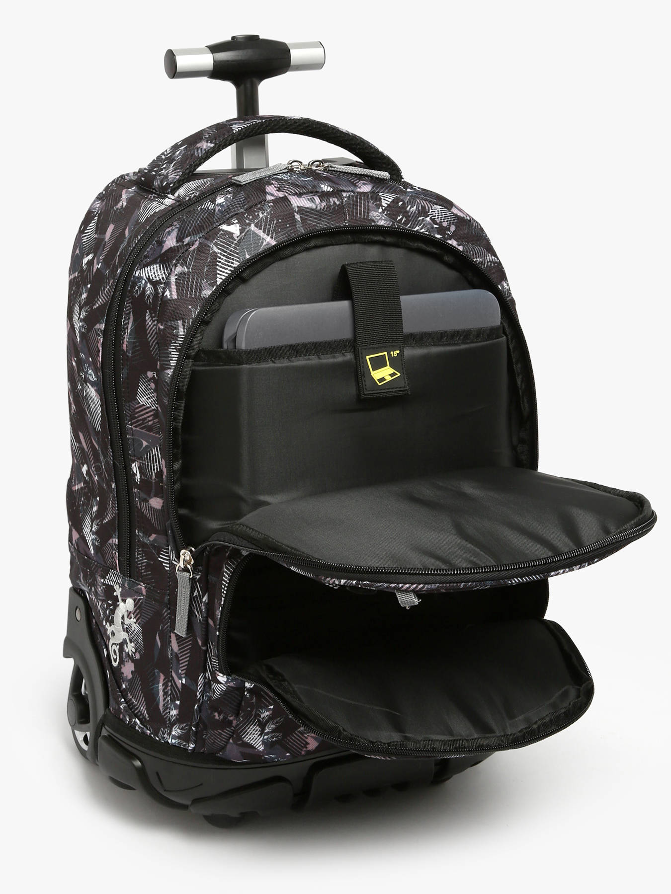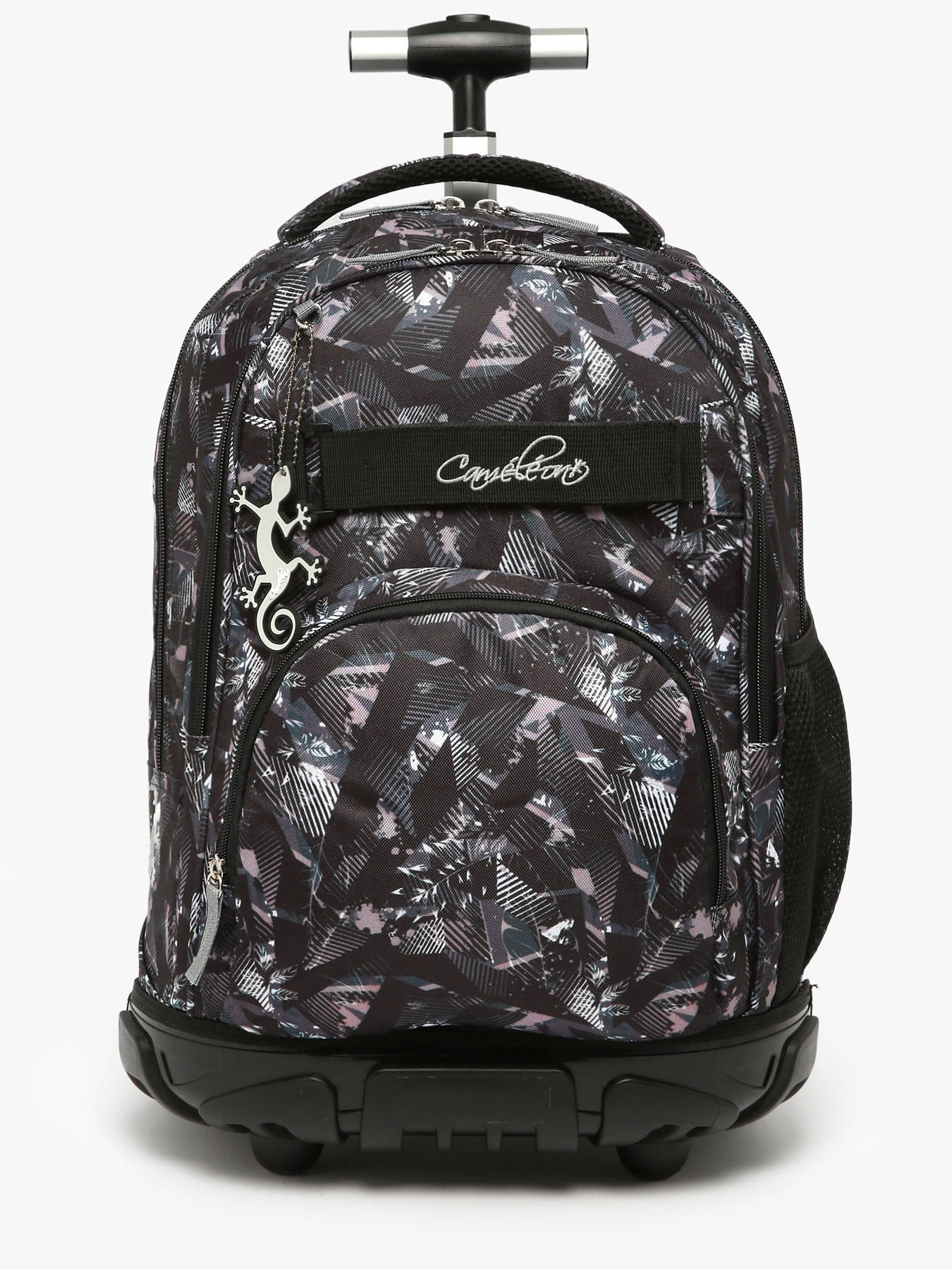 45 cm - 31 litres - 1.9 kg ~ Ce sac à dos à roulettes 45 cm de la ligne Futur signé Caméléon accompagnera idéalement les élèves à partir du CE2. Son imprimé all-over affirmé, décliné en Pixel Grey ou Pixel Pink, apporte une touche moderne et tendance. Doté de deux compartiments principaux et d’une poche zippée sur le devant, il permet de ranger facilement tous les formats de cahiers (21 x 29,7 cm, 24 x 32 cm), classeurs A4 et plus. Une poche filet sur le côté permet d’y glisser une gourde. Il a également une poche pour glisser un ordinateur portable jusqu'à 15 pouces. Pratique, il peut être porté sur le dos ou tiré sur roulettes grâce à sa poignée télescopique en aluminium réglable, ses bretelles escamotables et sa housse de protection pour les roues. Son fond rigide et sa coque en plastique assurent une excellente durabilité. Une sangle velcro ornée du logo Caméléon brodé et un porte-clé assorti viennent compléter le look du sac. Conçu pour durer et accompagner le quotidien avec style et robustesse.